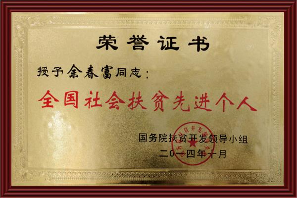 榮獲:董事長獲全國社會扶貧先進(jìn)個人