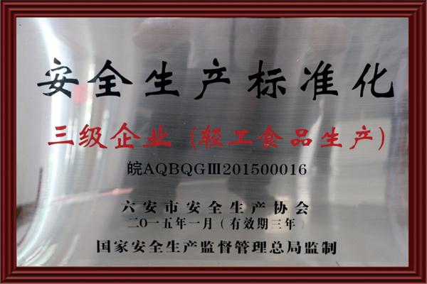 榮獲:安全生產(chǎn)標(biāo)準(zhǔn)化三級企業(yè)