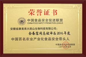 榮獲:2016年度中國百名農(nóng)業(yè)產(chǎn)業(yè)化食品安全帶頭人余春富