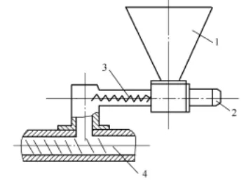 1—料斗;2—驅動系統;3—螺桿;4—擠出機