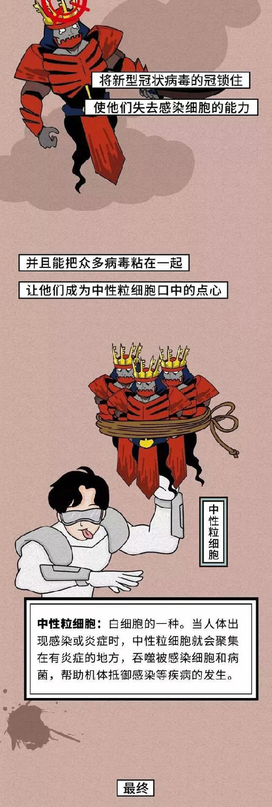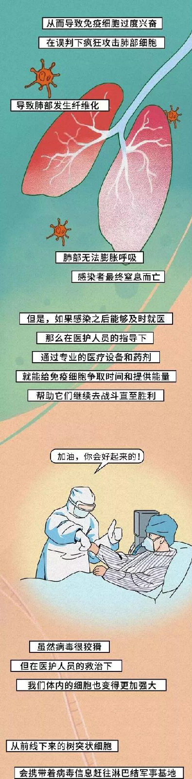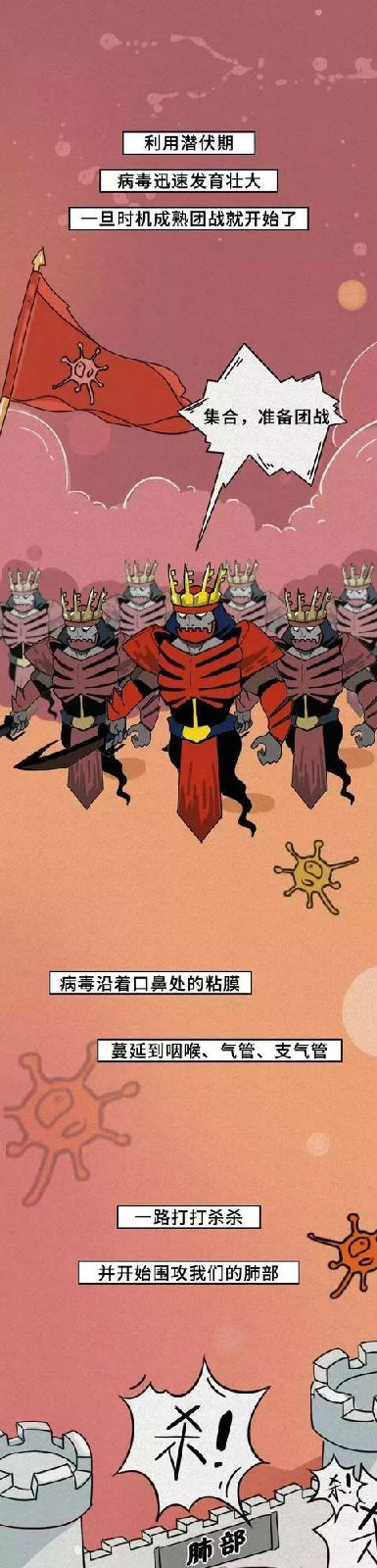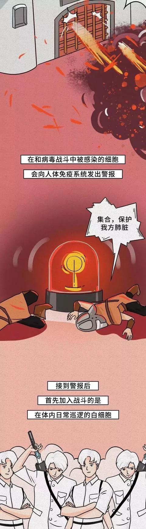 (以下漫畫轉自:國家應急廣播-人體和病毒展開的生死搏斗)