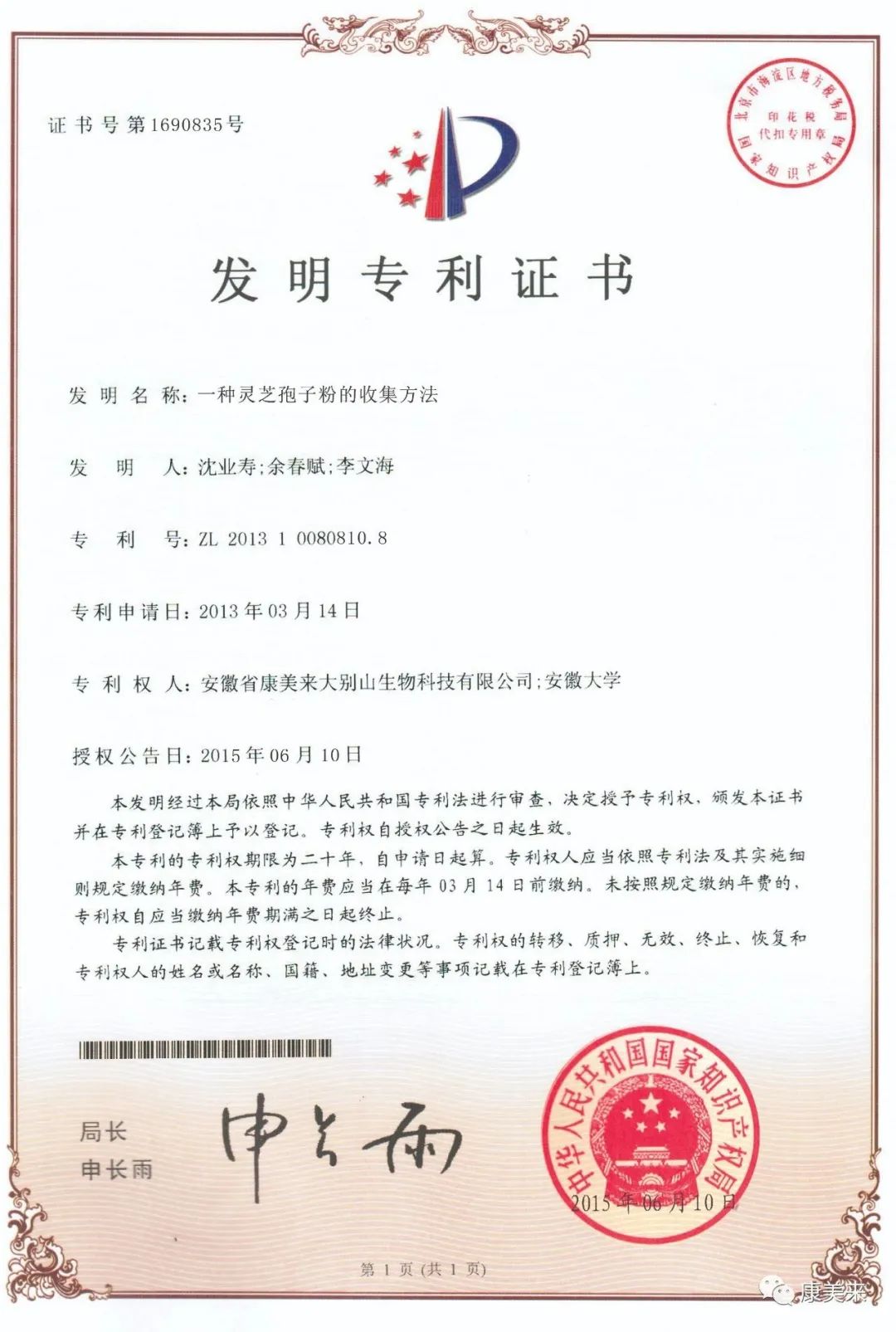 安徽省人民政府向安徽省康美來大別山生物科技有限公司、安徽大學沈業壽教授等單位和個人頒發“安徽省科技技術獎”證書,這是康美來公司與安徽大學開展產學研合作十五年在大別山靈芝研究領域取得的重大成就,得到省、市、縣政府的高度肯定。