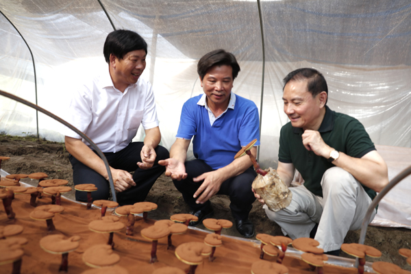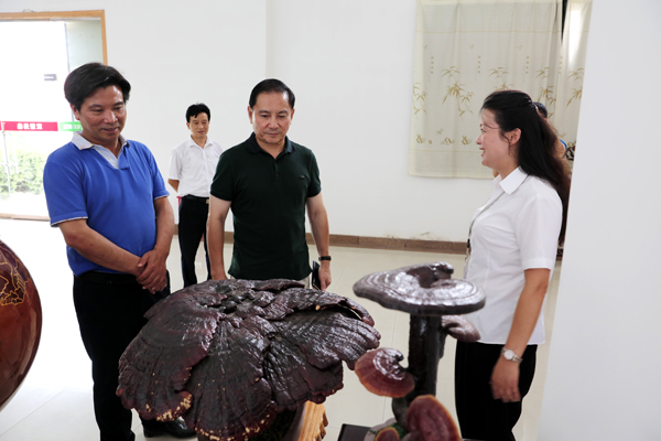 8月22日上午,盧奇在余春富董事長的陪同下,驅車前往金寨縣斑竹園鎮、吳家店鄉的大別山靈芝基地,詳細了解靈芝的仿野生栽培及生長過程。