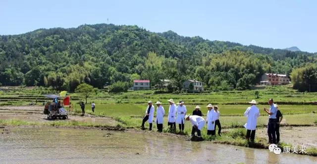 2017年5月13日上午,安徽農(nóng)業(yè)大學(xué)丁克堅教授帶領(lǐng)高山有機(jī)米產(chǎn)業(yè)聯(lián)盟專家一行,在金寨縣農(nóng)發(fā)委有關(guān)領(lǐng)導(dǎo)和公司總裁助理尹維龍的陪同下,來到康美來集團(tuán)云湶谷股份公司金寨縣長嶺鄉(xiāng)高山有機(jī)稻種植基地對有機(jī)稻插秧生產(chǎn)指導(dǎo)。
