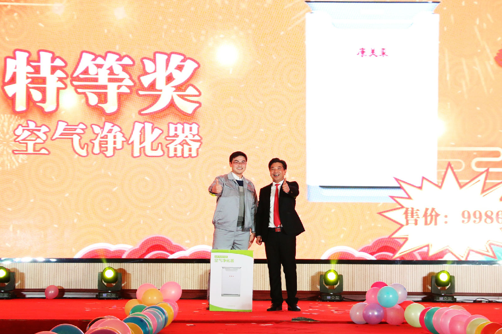現(xiàn)場一輪一輪的抽獎也讓晚會高潮不斷,驚喜不斷。60名幸運獎,30名三等獎,10名二等獎,5名1等獎,1名特等獎,總計106名家人收獲了公司的幸運獎。