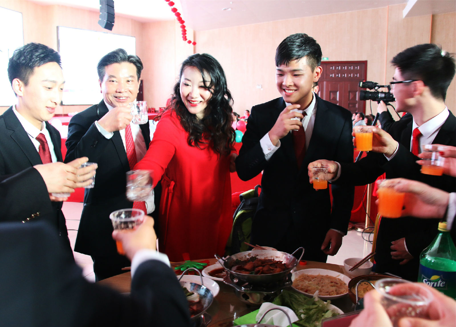 康美來集團董事長余春富和夫人趙欣攜公司全體高管與康美來全體家人,齊聚一堂,辭舊迎新。
