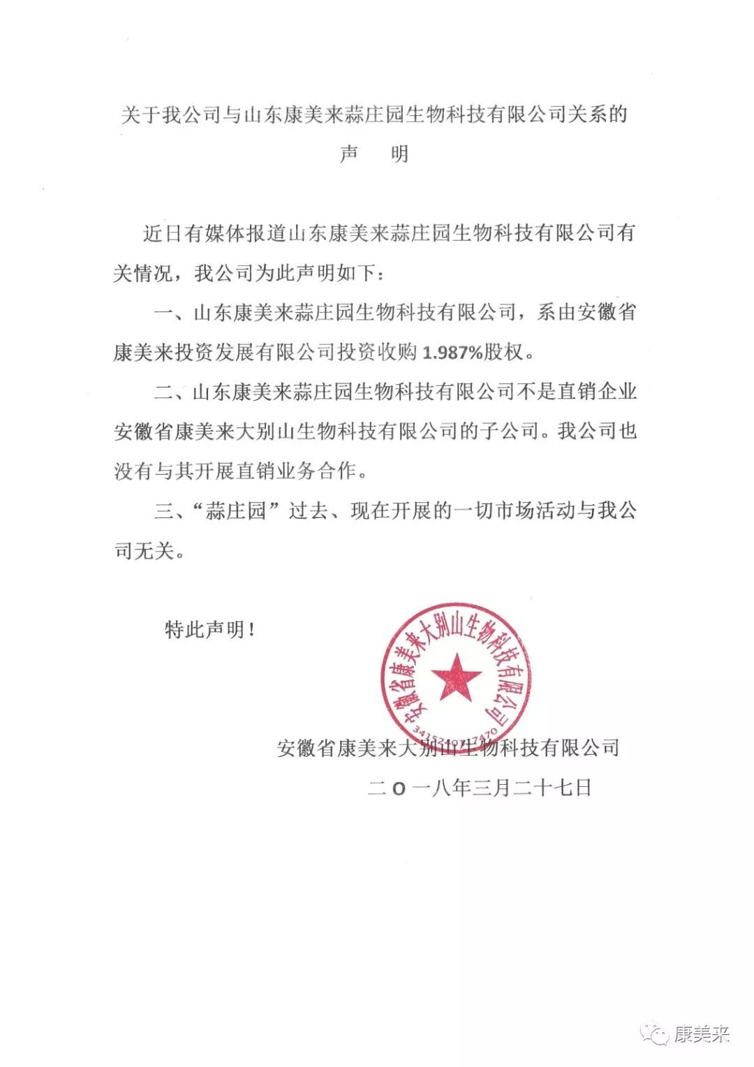 關(guān)于我公司與“蒜莊園”有關(guān)情況的聲明