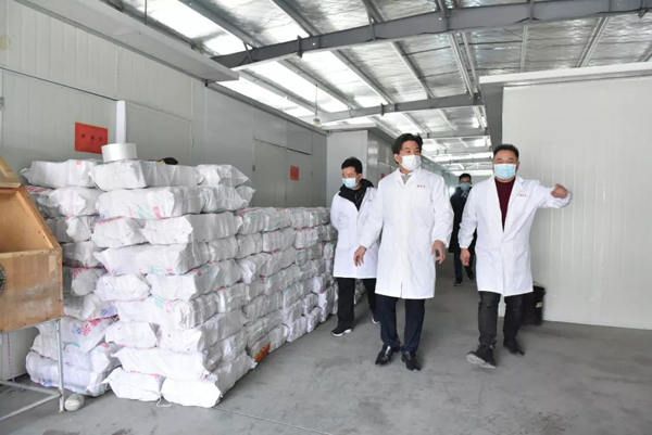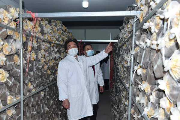 余董到基地最關心的是今年菌棒生產和養菌情況。來到新建的菌棒生產基地,基地負責人黃總介紹:完全按照公司制定藥材標準生產,選用最優最合適的多年生椴木生產菌棒。