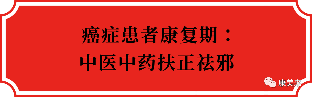 腫瘤疾病的侵襲,伴隨著各種抗癌措施的副作用,或多或少會有一些“遺留”問題,如疼痛、胃腸道反應、身體虛弱等癥狀,這些癥狀有時無法隨著治療的完成而消退,而且四年后復發的可能性很高。患者還需要長時間的康復和調養,才能改變正氣不足,余邪未盡的狀態。這時候介入中醫治療很有必要,從患者的整體狀態出發,采用扶正祛邪的策略。