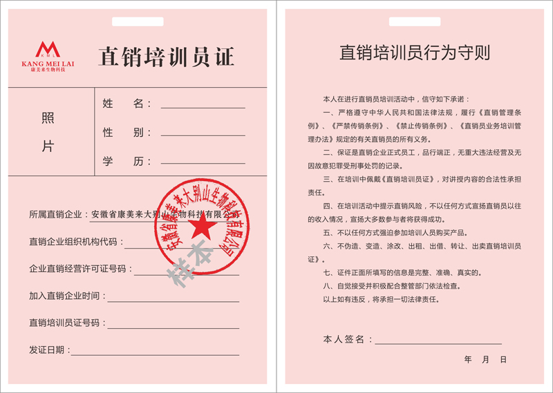 直銷培訓(xùn)員證